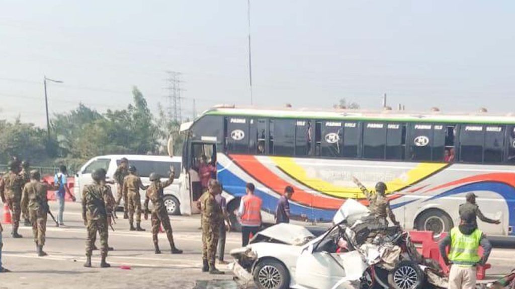 জানা গেছে, সকালে ধলেশ্বরী টোল প্লাজায় একটি বাস নিয়ন্ত্রণ হারিয়ে প্রাইভেটকারটিকে ধাকা দেয়। এতে পথচারীসহ পাঁচজন নিহত হয়েছেন। এ ঘটনায় আরও ১০ জন আহত হয়েছেন। আহতদের উদ্ধার করে হাসপাতালে পাঠানো হয়েছে।