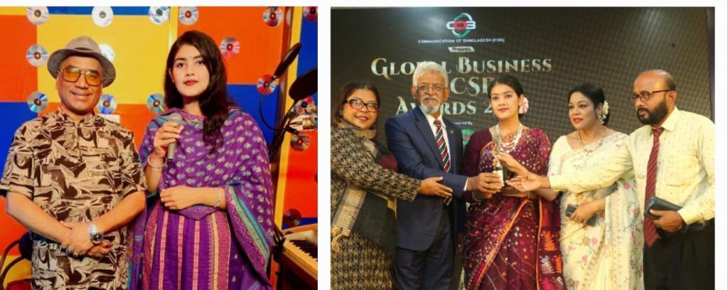 বাংলাদেশ এসোসিয়েশন অব ব্যাংকার্স এর সভাপতি আবদুল হাই সরকার,সাবেক প্রধানমন্ত্রী বেগম খালেদা জিয়ার উপদেষ্টা ড. সুকোমল বড়ুয়া,সাবেক প্রধানমন্ত্রী বেগম খালেদা জিয়ার পার্সোনাল ফটোগ্রাফার,এনটিভির পরিচালক আলহাজ্ব মোঃ নুরুদ্দিন আহমেদ ও একুশে পদকে ভূষিত নজরুল সংগীত শিল্পী ফেরদৌস আরা তার হাতে অ্যাওয়ার্ড তুলে দেন। সম্প্রতি বাংলাদেশ টেলিভিশন এর ফিলার সং ” আমরা পৃথিবীর শান্তি চাই ” গানে কন্ঠ দিয়েছেন আরমিন জামান নিশু।
