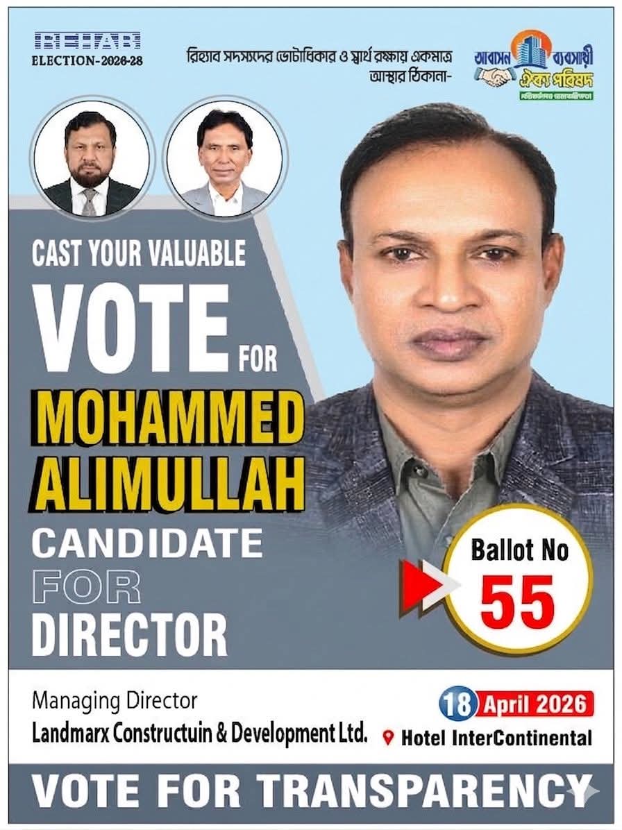 অর্ক হাসান: রিয়েল এস্টেট অ্যান্ড হাউজিং অ্যাসোসিয়েশন অব বাংলাদেশ (রিহ্যাব)-এর আসন্ন নির্বাচনে ঐক্য পরিষদ প্যানেল থেকে পরিচালক প্রার্থী হিসেবে আলিম উল্লাহর নাম আলোড়ন সৃষ্টি করেছে। ভোটারদের ধারণা, কমিটিতে এমন নেতা থাকা জরুরি, যিনি দৃঢ় নেতৃত্ব, দূরদর্শী পরিকল্পনা ও জোরালো ভূমিকা নিতে সক্ষম।